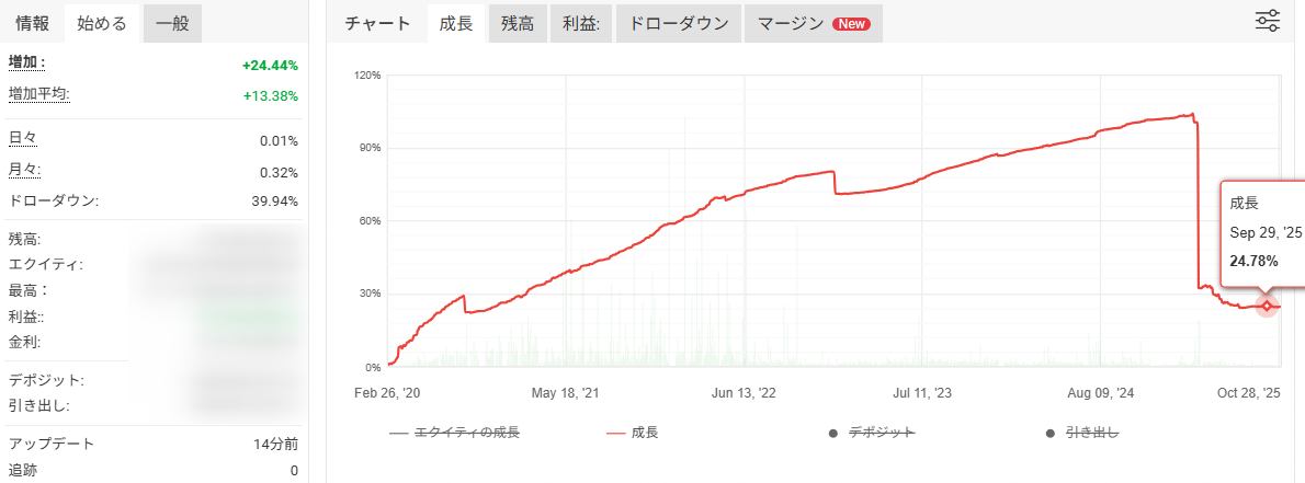 こちらはバックテストではなく、実際に運用しているデータとなります。