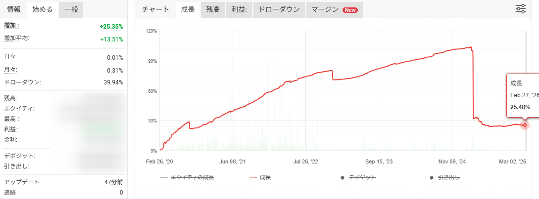 こちらはバックテストではなく、実際に運用しているデータとなります。
