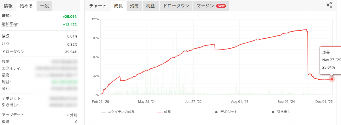 こちらはバックテストではなく、実際に運用しているデータとなります。